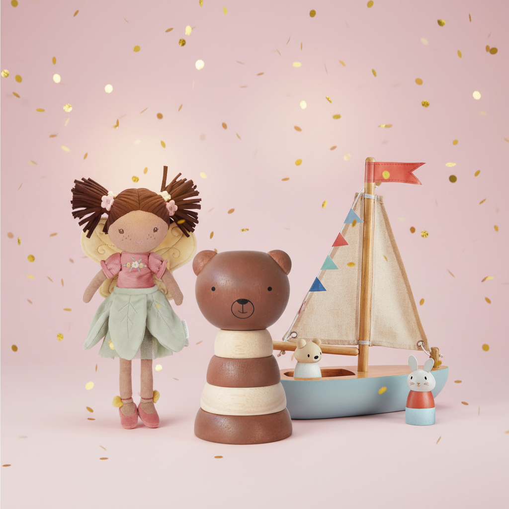 Explore our charming Wooden Toys Collection, featuring sustainably crafted gifts that spark imagination from classic stacking rings to musical instruments and detailed dollhouses.
