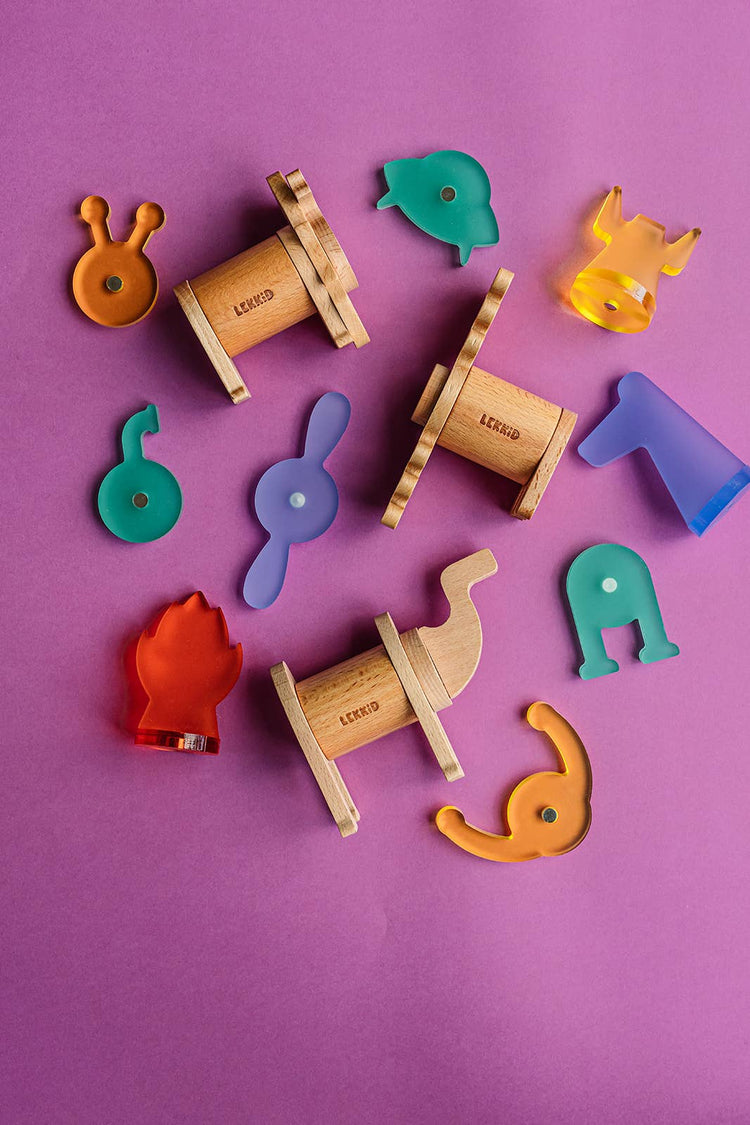 This set is a creative, open-ended, STEM construction toy designed to spark curiosity and boost creativity in children ages 3 and up. This 22-piece set includes a playful mix of beech wood and colourful acrylic parts, all embedded with magnets that let kids easily connect and build endless animal shapes.